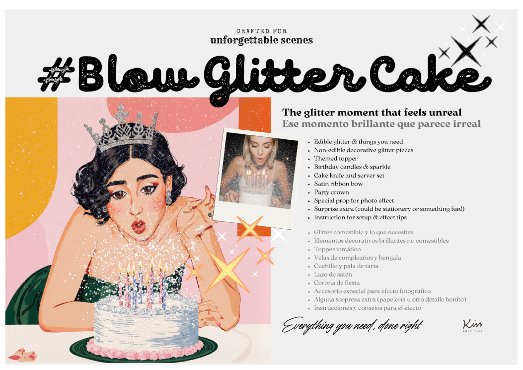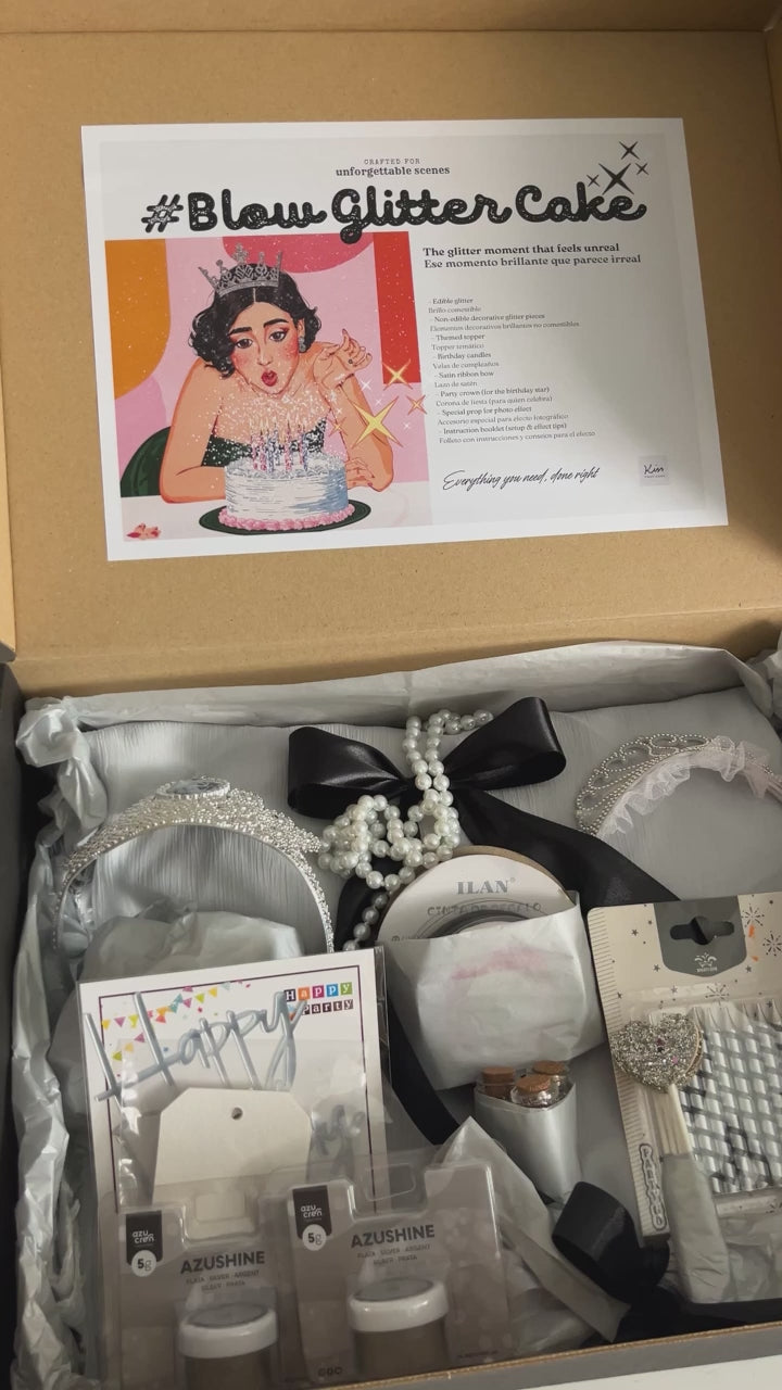 Convertido en tendencia por TikTok, el Blow Glitter Cake es hoy una de las formas más icónicas y llamativas de celebrar — y este kit hace que sea fácil lograrlo.